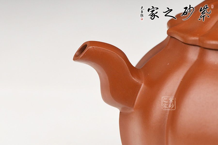 特点:质感绵密、紧实细緻,持之扎实沉重、红润豔丽,泥中极品,无以伦比;泥胚含少许原矿颗粒,冲淋热水后色变极大,呈红中带紫,养壶易现“包浆”之美。