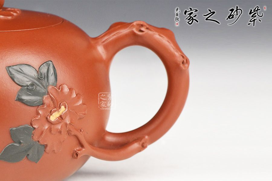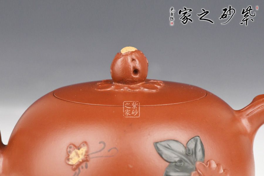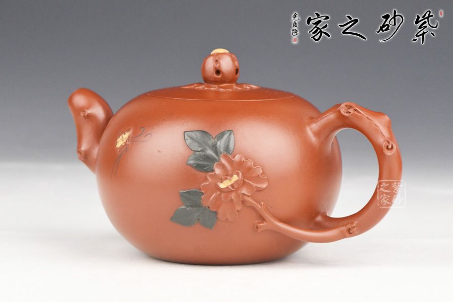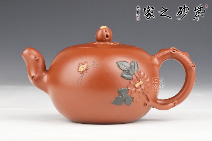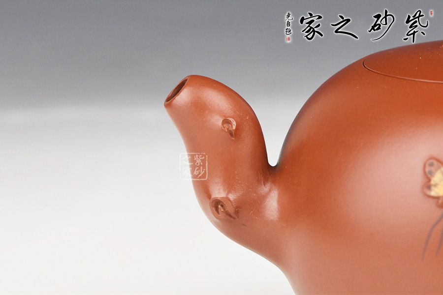 特点:质感绵密、紧实细緻,持之扎实沉重、红润豔丽,泥中极品,无以伦比;泥胚含少许原矿颗粒,冲淋热水后色变极大,呈红中带紫,养壶易现“包浆”之美。