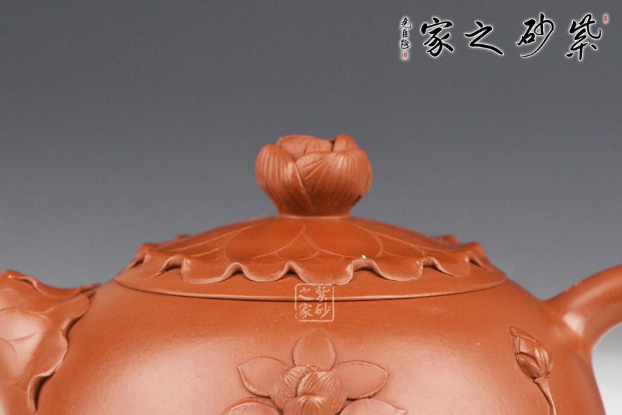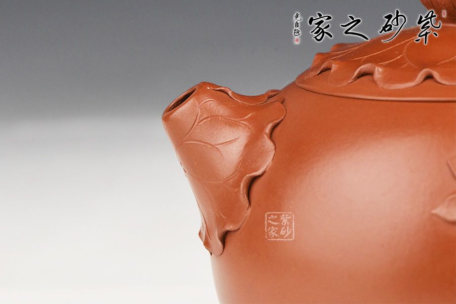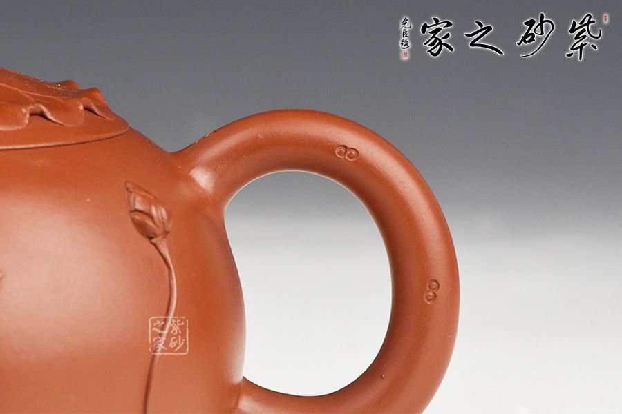 特点:质感绵密、紧实细緻,持之扎实沉重、红润豔丽,泥中极品,无以伦比;泥胚含少许原矿颗粒,冲淋热水后色变极大,呈红中带紫,养壶易现“包浆”之美。