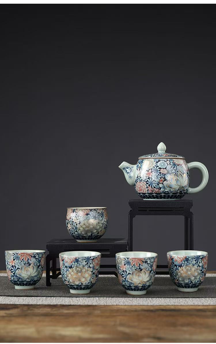 开片汝窑掐丝万花茶壶