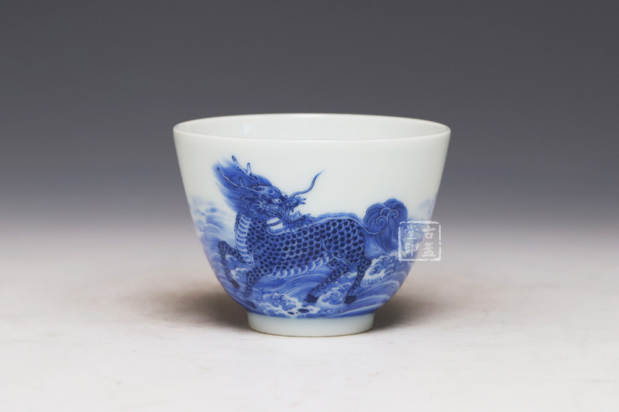 青花麒麟踏浪纹杯 [ 编号:252526 ]