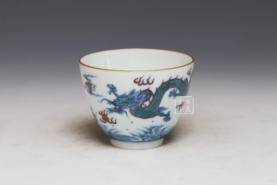斗彩苍龙教子纹杯