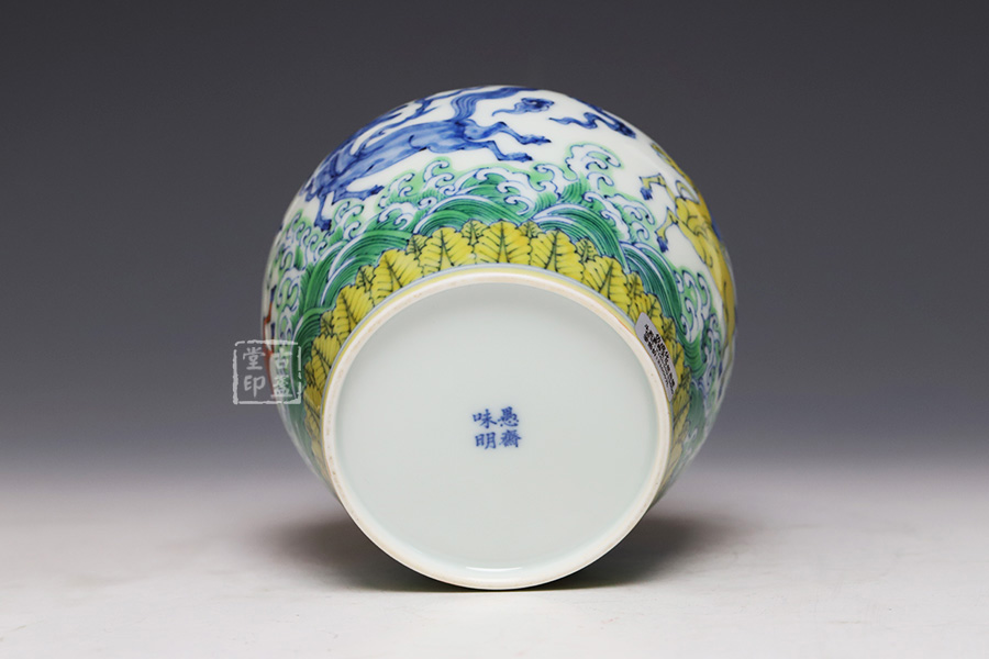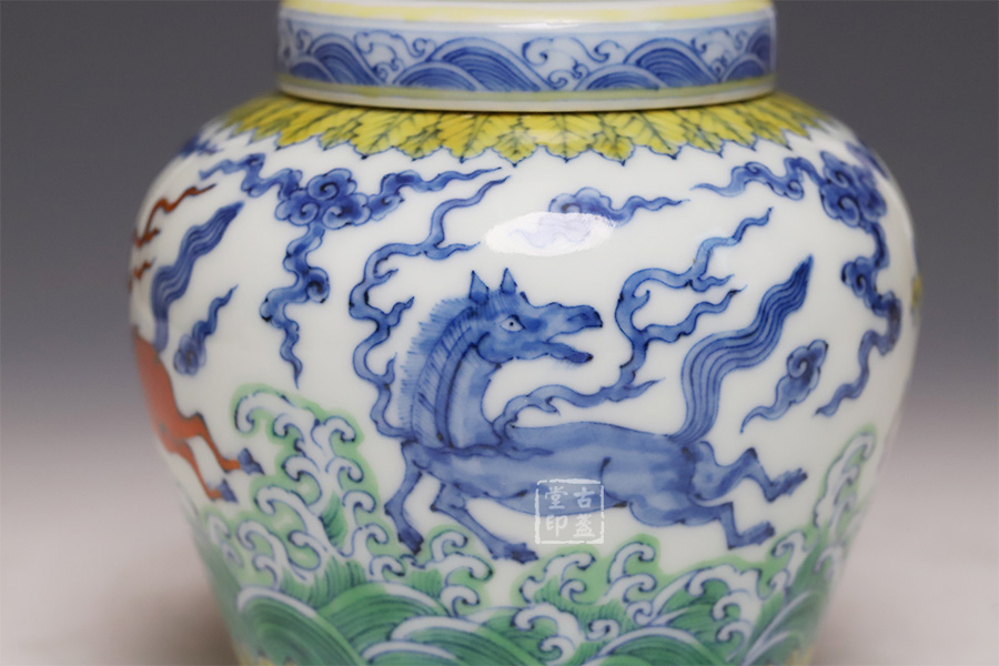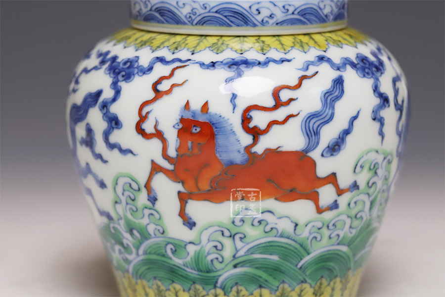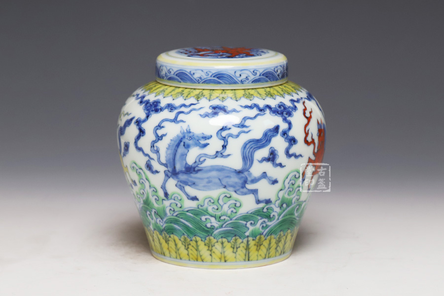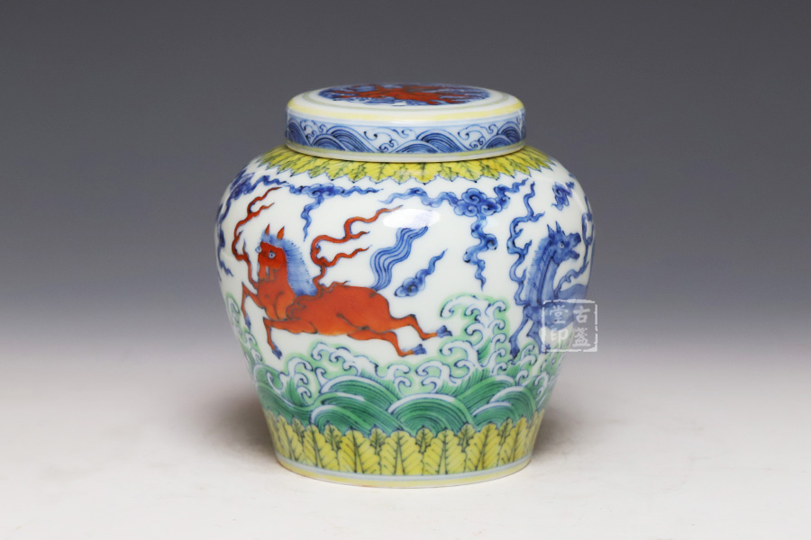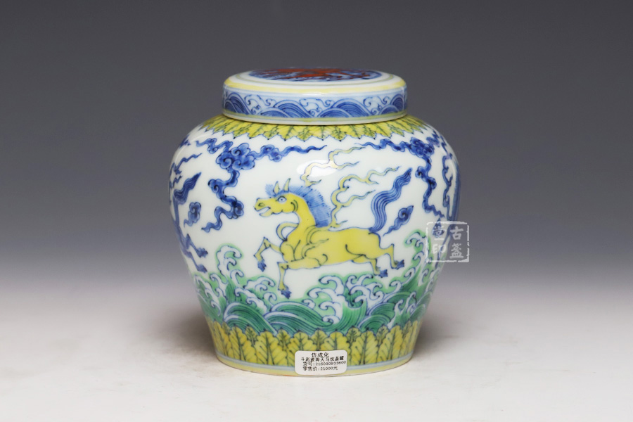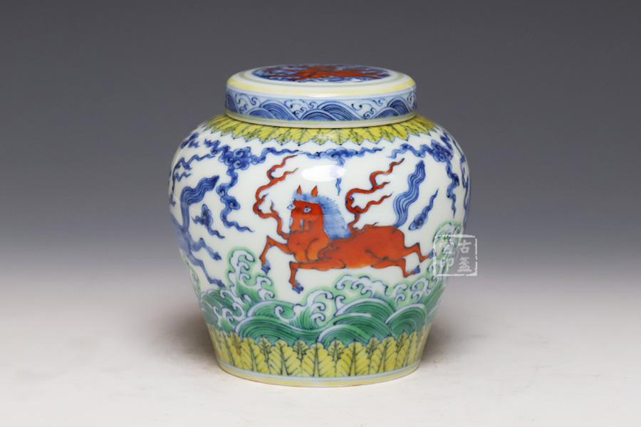 仿成化斗彩波涛天马纹盖罐 [ 编号:252543 ]