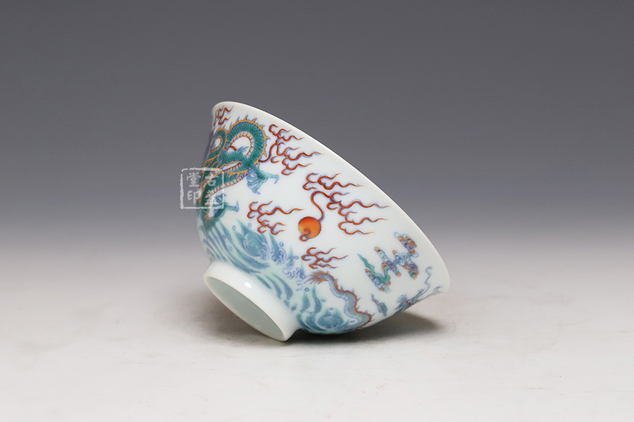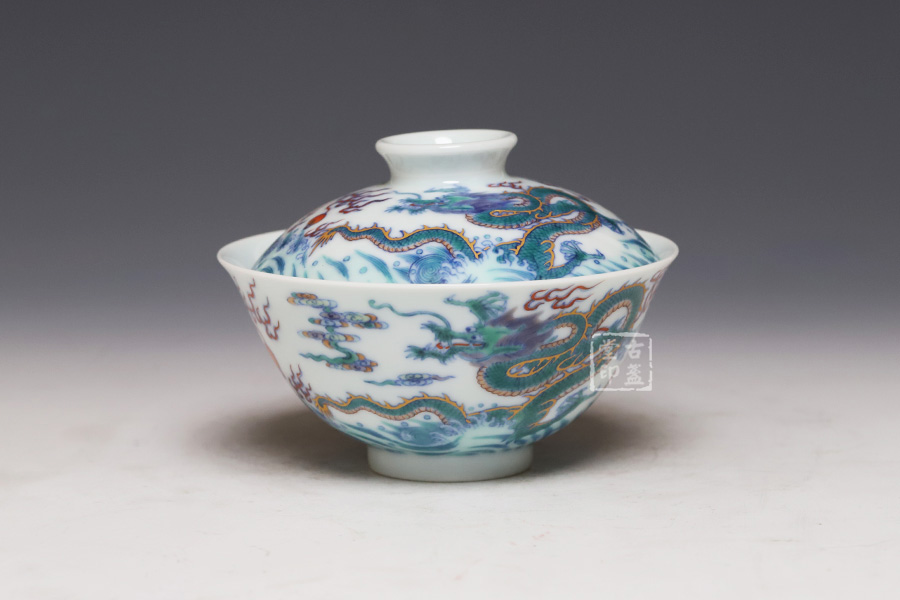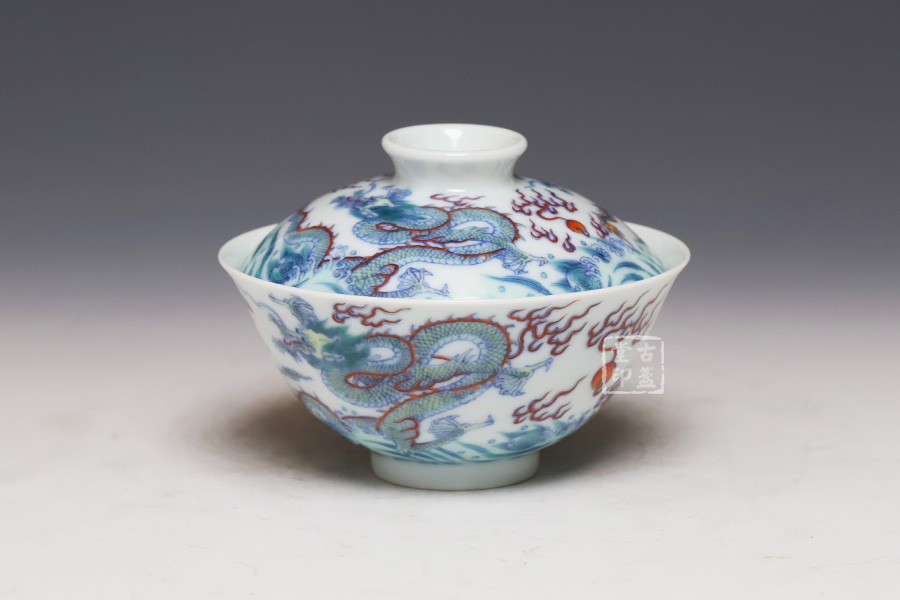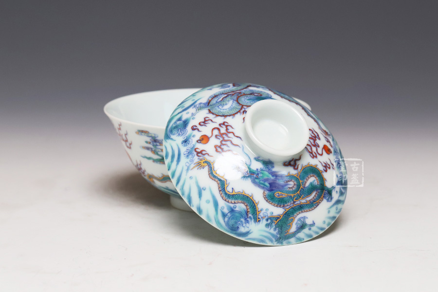 斗彩双龙海水纹盖碗 [ 编号:252552 ]