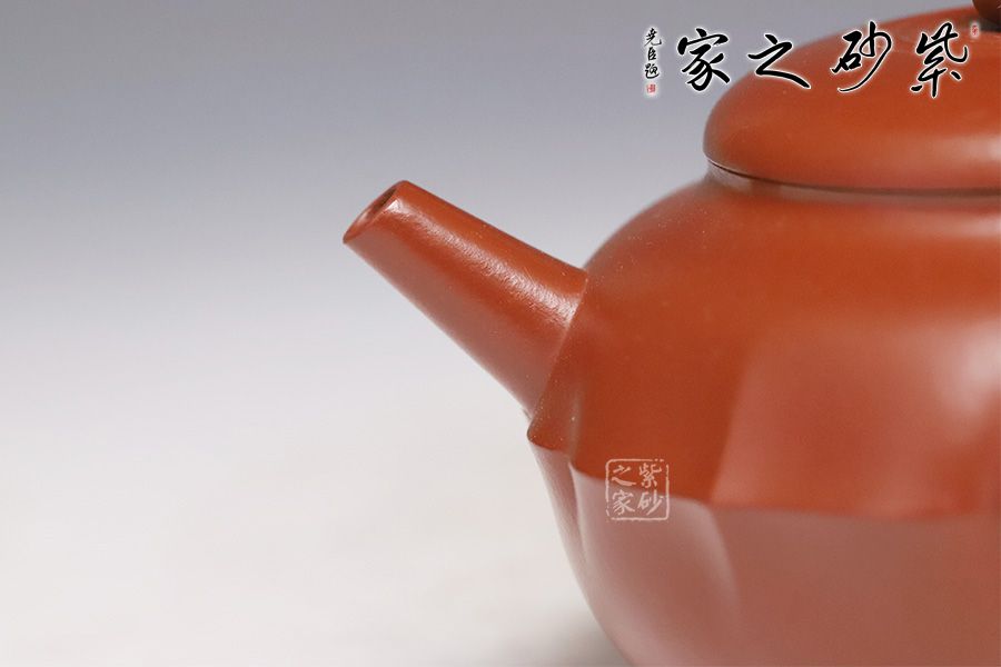 特点:质感绵密、紧实细緻,持之扎实沉重、红润豔丽,泥中极品,无以伦比;泥胚含少许原矿颗粒,冲淋热水后色变极大,呈红中带紫,养壶易现“包浆”之美。
