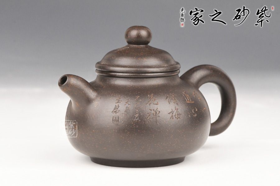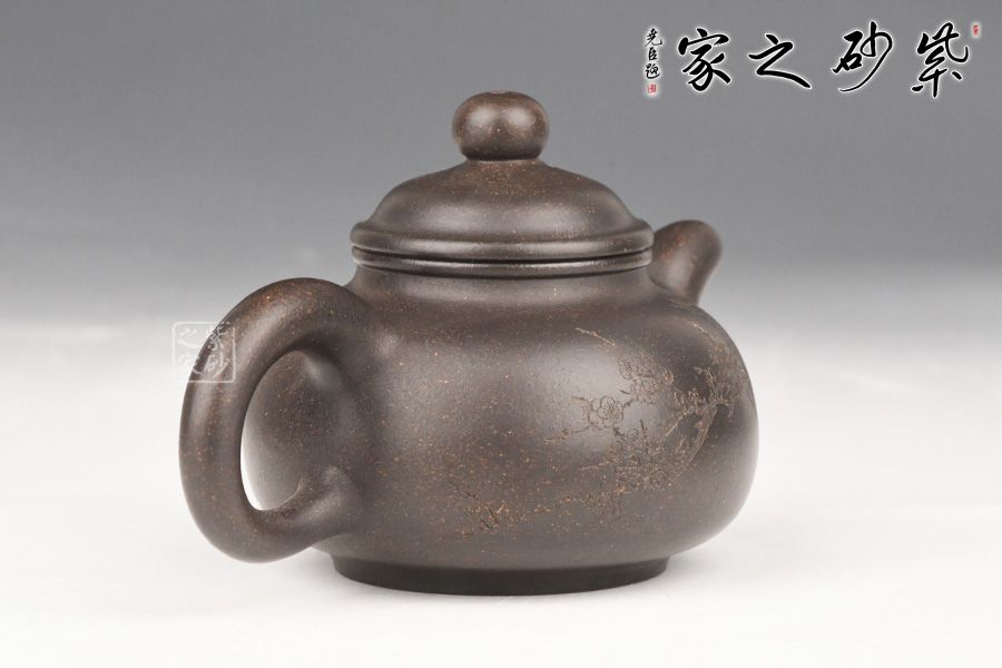 黑金砂是紫泥里的一种,原矿里含锰高,含铁红粉丰富,所以经过高温烧成后壶身通体乌黑油亮隐隐泛着红色的颗粒有如亚金一样,故称黑金砂,泥料含有朱砂,段泥砂的属性,容易泡养。黑金砂紫泥中的精品