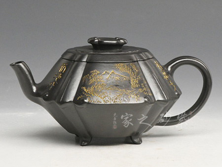 简介:黑泥,其色如墨,似黑夜浩瀚天际,深不可测,配以点点金砂,直如天星闪烁,高挂暗夜长空;神秘静寂、引人神往,故历来深受世人钟爱。为早期最常见通用之泥料之一,因矿脉里铁质成份较高,日久使用,深获早期壶识者深爱、赞赏。养壶者之最爱。新壶初用砂土气重,茶汤略现砂气,经使用壶身展现出灰黑,泡茶鋉数日则如墨黑,泡茶好喝,评价好赞不绝口!