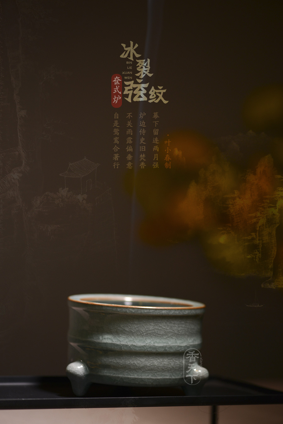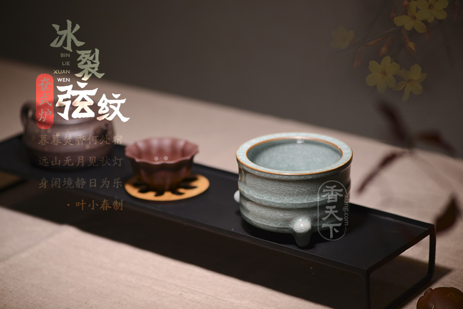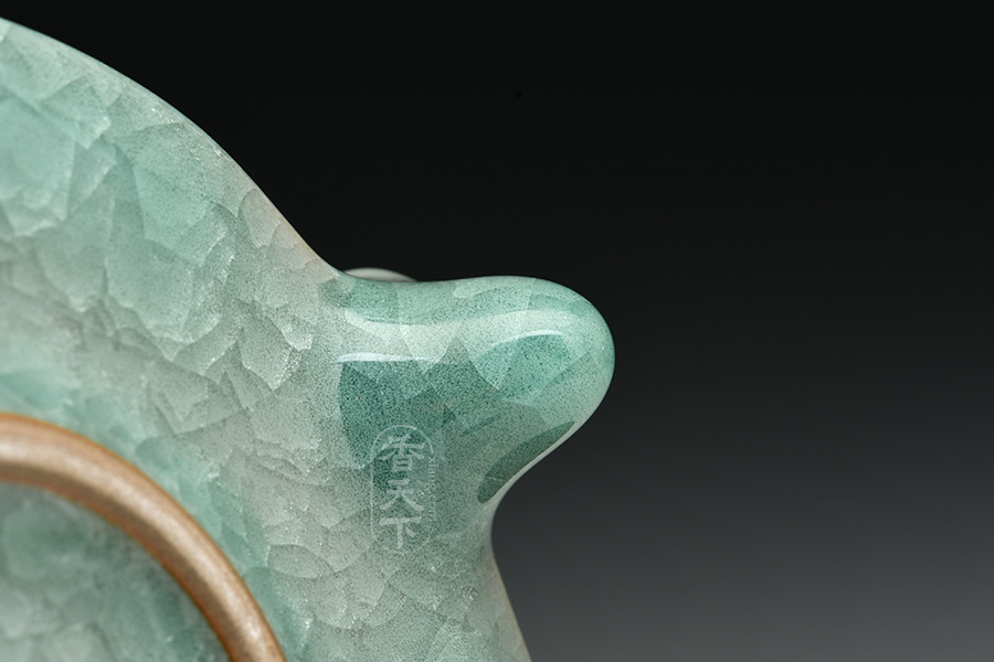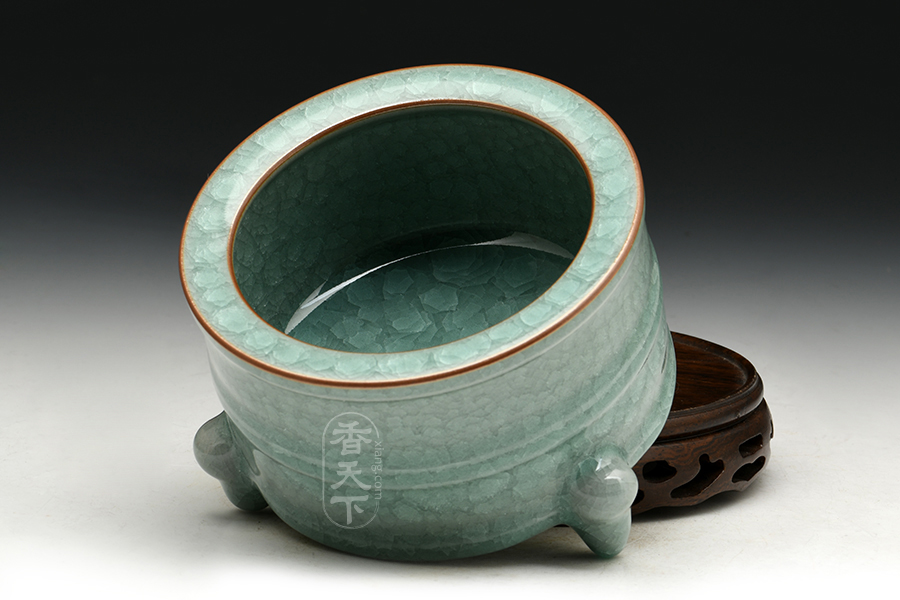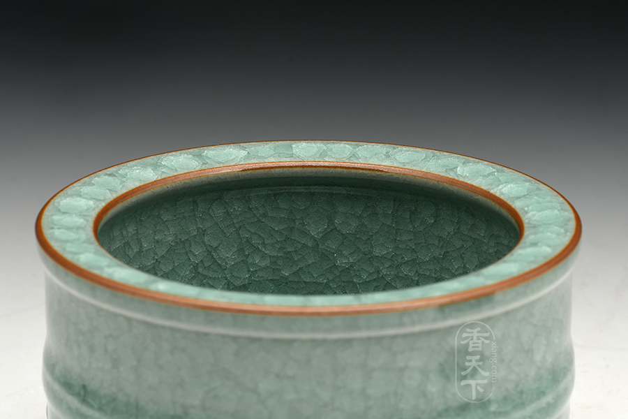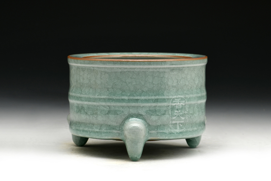 此款香炉为奁式炉流行时间较长,自北宋创烧伊始,历代均有烧制,流行范围也很广泛,汝窑、定窑、南宋官窑、龙泉窑、吉州窑等均有同类制品。此款香炉器型庄重沉稳,炉口平折内收,炉身为直筒奁式,色泽温润明亮,淡然如玉,历经岁月冲刷而越发莹润。三足稳健支起炉身,四平八稳,造型稳重大方,浑厚淳朴,工艺精湛,颇具宋人典雅的艺术风。这款香炉不论是用于焚香还是用做摆件,都彰显了主人的优雅从容,内敛深刻,如一壶好酒,历久弥香。