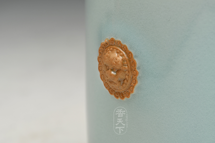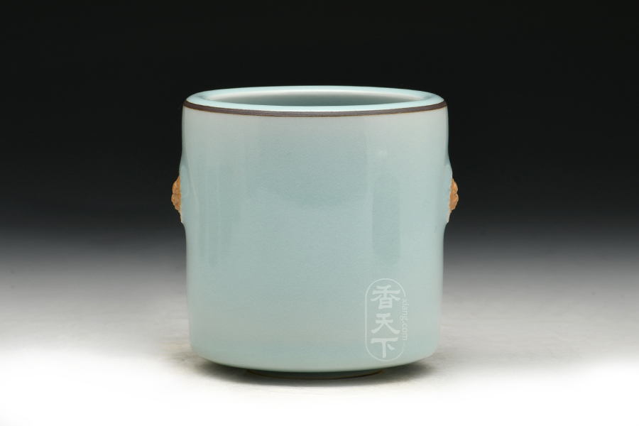 筒式炉,也称法筒炉。炉浅唇口,直筒形身,由上至下微微内敛。此炉色泽晶莹纯净,类冰似玉。两侧附狮耳,狮为百兽之首,取其威仪以率六军之统。当细查狮首之形、之工,取其威仪神骏者为善。两侧狮耳高贵大气,威猛庄严,寓意盛世呈祥。筒式炉为文房中难得的案间清赏,煮茗燃香,可感佳物在案、幽香萦室的高雅格调。