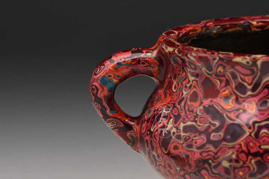 此作采用大漆技艺,纯天然手工制作,绝缘性好,耐腐蚀,且富有光泽,细密厚实,大气耐看。