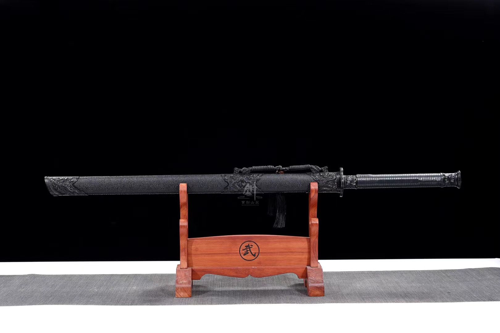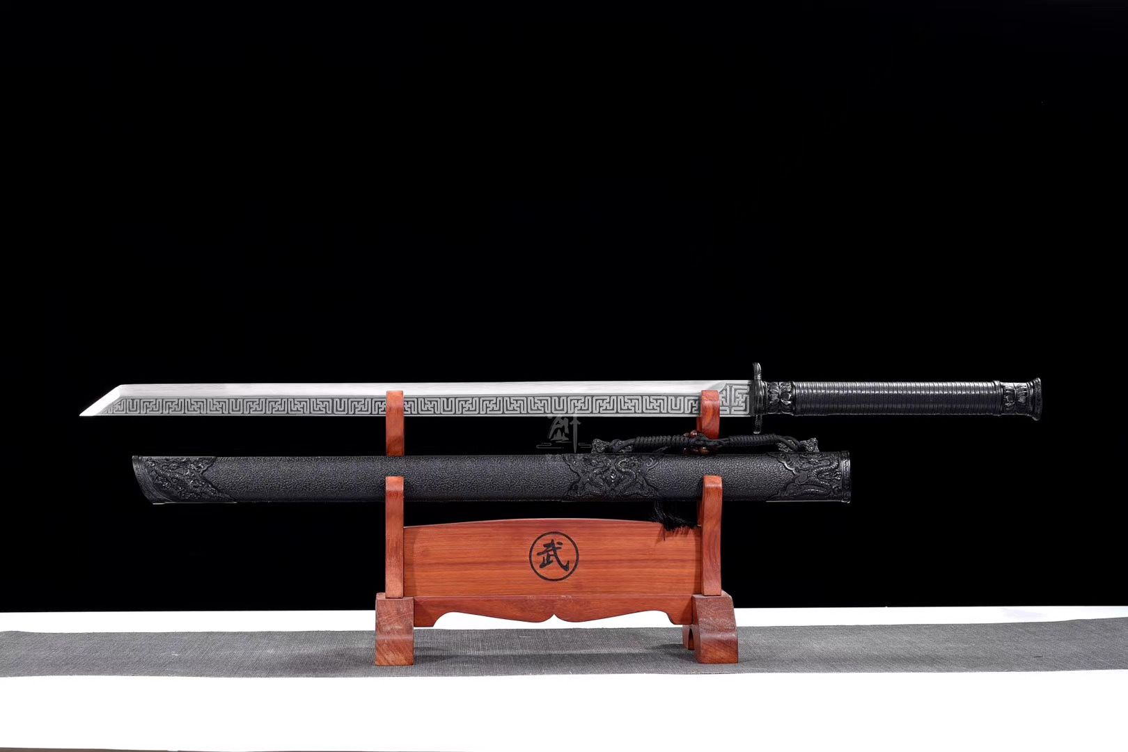 作者:武道 产地:龙泉 规格:长款刀 主题: 刃材:锰钢 风格:唐刀 尺寸:115*4*0.5cm 重量:2000g