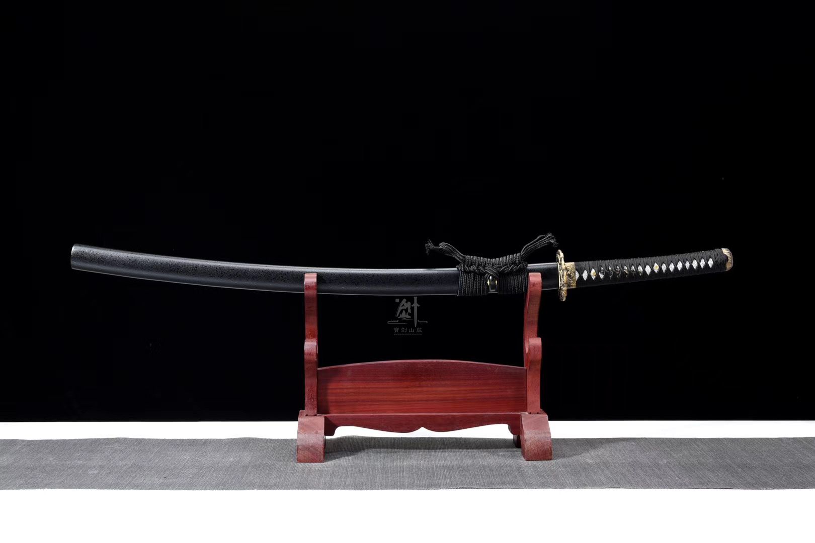 作者:武道 产地:龙泉 规格:长款刀 主题: 刃材:锰钢 风格:武士刀 尺寸:103*3.2*0.6cm 重量:1100g
