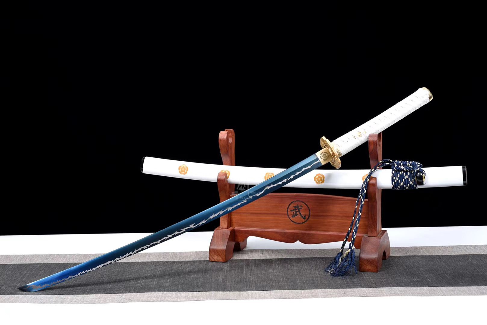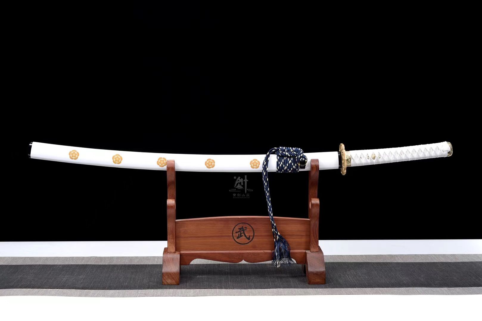 作者:武道 产地:龙泉 规格:长款刀 主题: 刃材:锰钢 风格:武士刀 尺寸:103*3.2*0.6cm 重量: