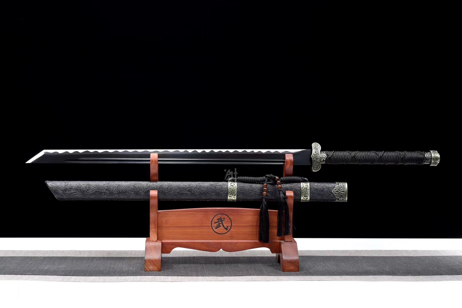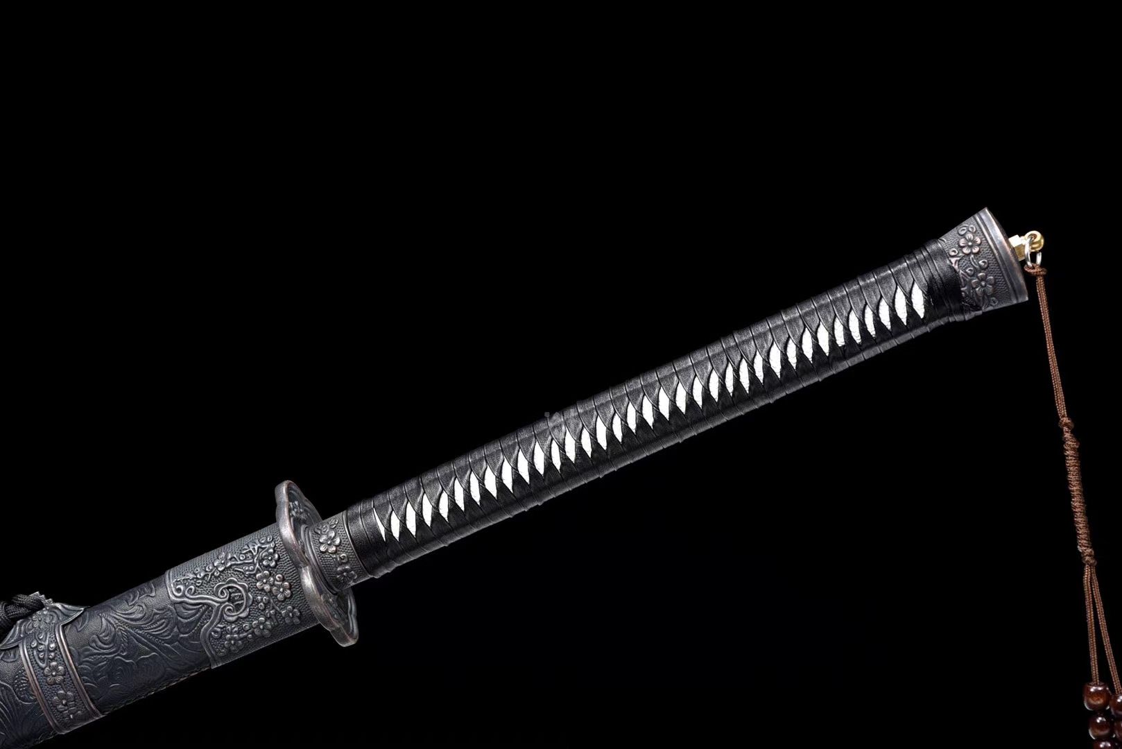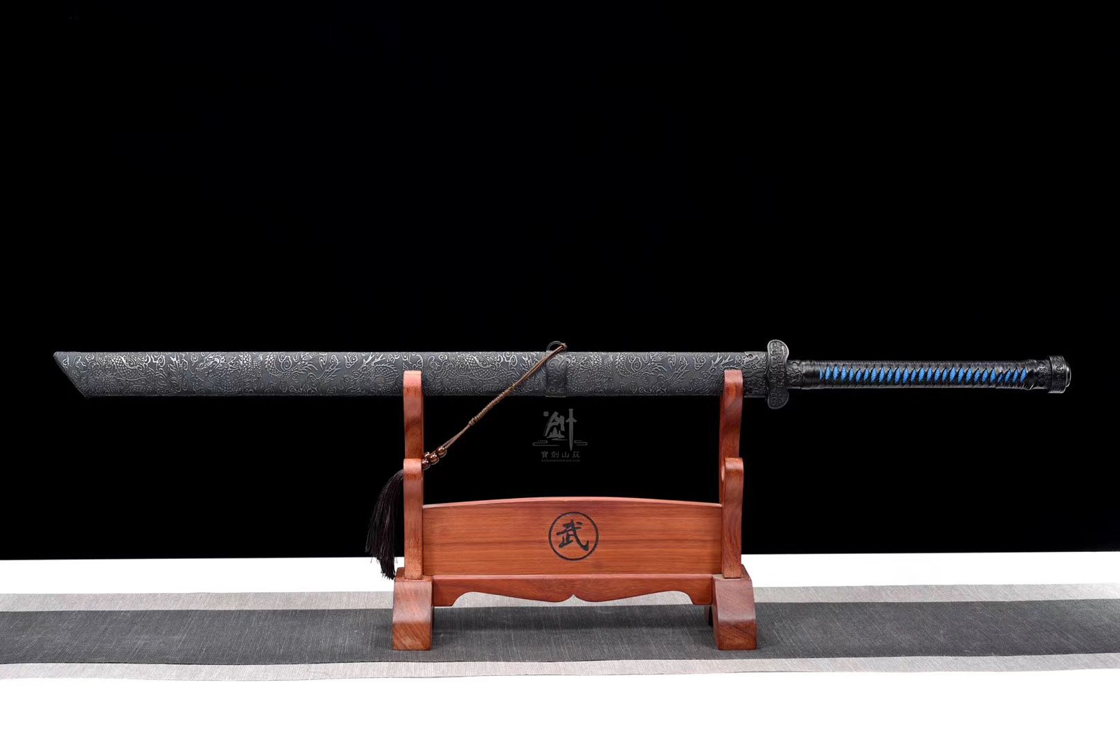 作者:武道 产地:龙泉 规格:长款刀 主题: 刃材:锰钢 风格:唐刀 尺寸:112*4*0.5cm 重量: