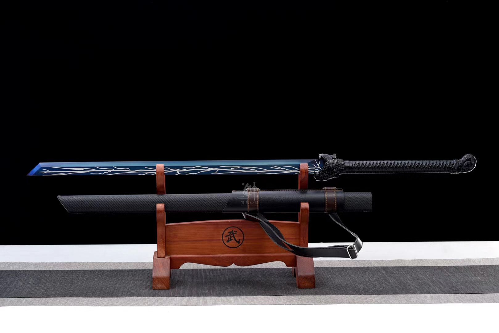 作者:武道 产地:龙泉 规格:长款刀 主题: 刃材:锰钢 风格:唐刀 尺寸:107*3.7*0.5cm 重量: