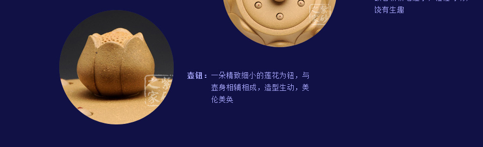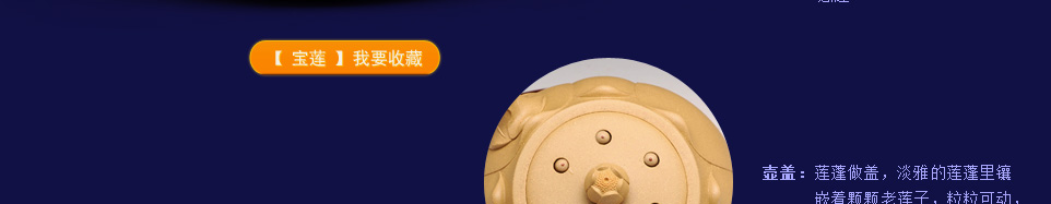 底槽清:产于紫泥最底层,质量之佳,为历代陶人推崇之首,亦为数百年来经典名器,及已故顾景舟大师最钟爱之名泥;该泥料质地特纯,泥质细腻、成色稳重,呈棕色,在近代制壶名家广泛使用。而底槽清泥料制作的《宝莲》相比段泥作品多了份稳重,令人内心更安静祥和。