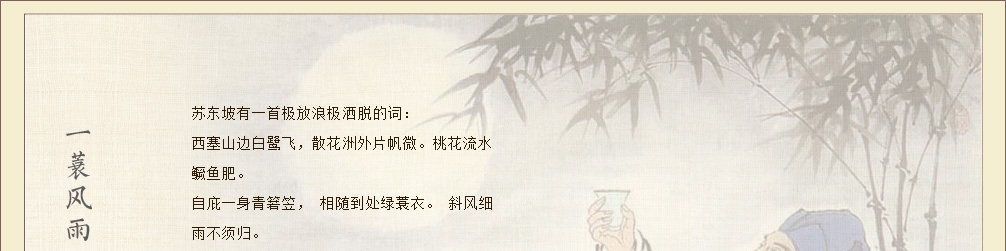 这天,苏东坡乔妆秀才,带一家奴,前去游览江南风景圣地莫干山,见一座道观,便和随从一起进去讨杯茶喝。道观主持道人见他衣着简朴,以为是个落第秀才,冷淡地说:“坐”,回头对道童说了声“茶!”后来见他脱口珠玑,谈吐不凡,料定有些来历。老道立刻换了一副面孔。说声“请坐”,又叫道童“敬茶”。坐了一会儿,老道借沏茶之机,悄悄地向仆人打问,才知道是大名鼎鼎的苏大学士、杭州剌史老爷到了,马上把苏东坡引至客厅,毕恭毕敬地说:“请上座”,并回头吩咐道童“敬香茶!”苏东坡心想,出家人尚且如此世故,难怪世上人情淡如水。不觉暗暗发笑。
