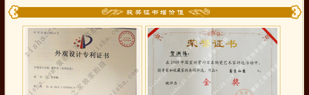 2009年——《富贵如意》荣获中国宜兴紫砂百名陶瓷艺术家评选活动金奖