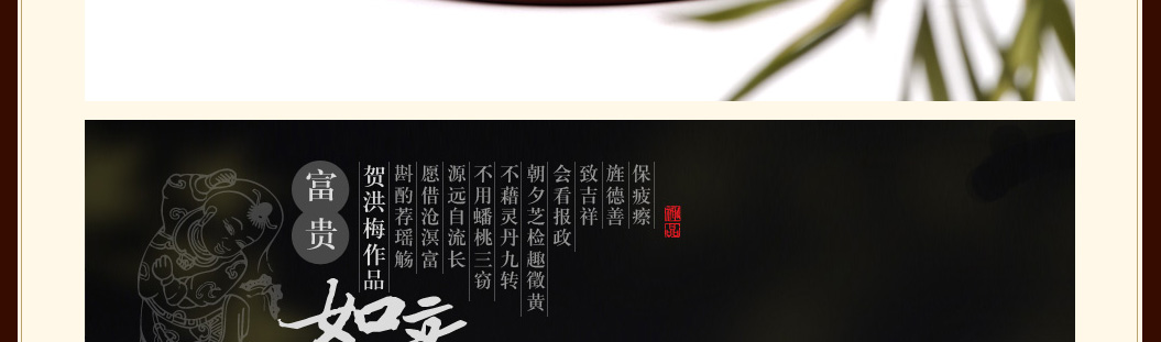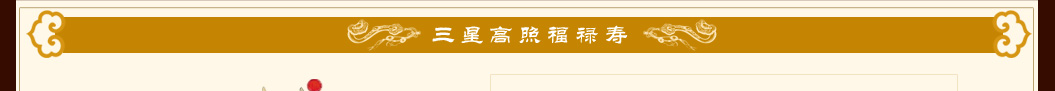 福、禄、寿在民间流传为天上三吉星。福,怀抱婴儿表示五福临门;禄,手捧如意寓意高官厚禄;寿,手捧寿桃意为长命百岁。民间喜欢把福、禄、寿三星作为生活中象征幸福、吉利、长寿的祝愿。