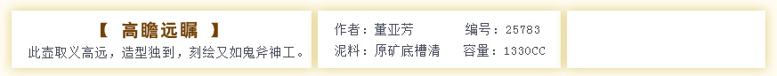 文人墨客们习惯于将文化意象转化成艺术形象,而"高瞻远瞩"这一文化内容历来也广受亲睐,或为隽永的诗文,或为洒脱的书画,董亚芳老师将其运用到紫砂艺术中倒是一次颇有新意的定位。