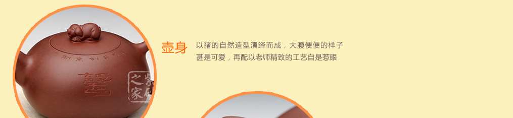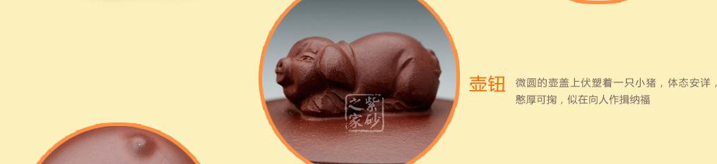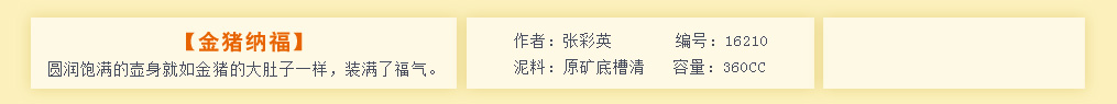 一个充满喜气的名字,整款作品造型近似猪的形象,十分独特,灵动风趣,闪烁着作者不同凡响的智慧。此款作品因其精致别新颖的形象于2007年1月荣获首届东方工艺美术之者博览会金奖。