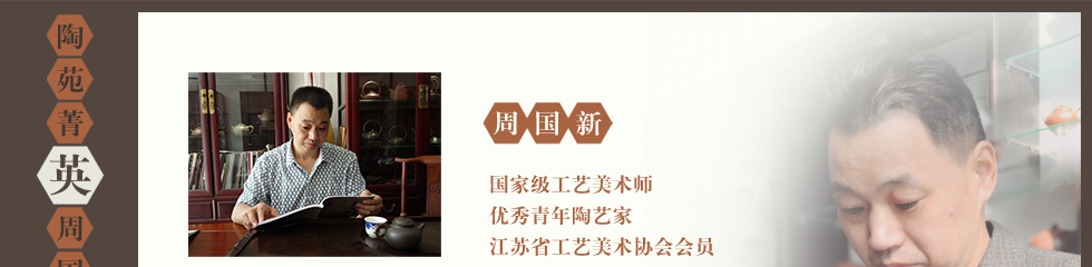 1969年生于陶都宜兴陶艺世家,1988年进紫砂工艺厂学习制壶,后又进中烟工艺美术学院,学习美术造型设计,勤奋好学,对紫砂艺术创作有极高领悟能力。在创作过程中受到高级工艺美术师顾道荣、江建翔的悉心指导,作品以传统风格为主,整体美观大方,极具艺术性、观赏性、实用性。做工精细挺拔,线条流畅自然,每件作品都熔铸着作者的心和意,每件作品都散发着浓郁的东方艺术特色