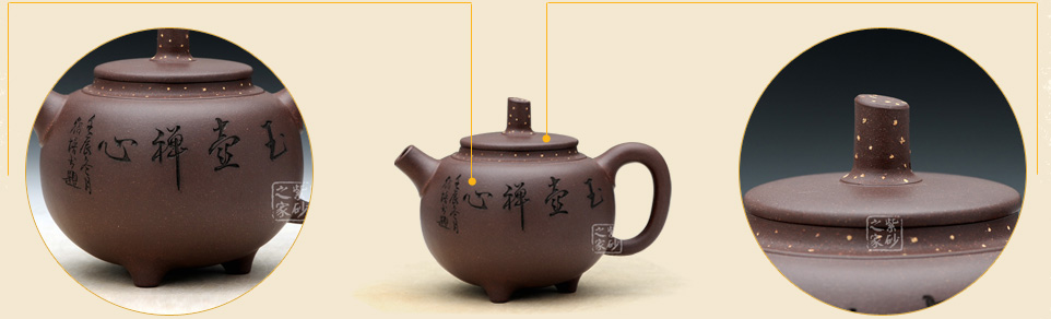 此壶身上从布局构思到字画装饰,则把我国特有的书法、国画篆刻于器皿之上,与器皿古朴的造型和色彩融于一体,匀称贴切,营造出一种深邃沉着的艺术境界,蕴藏着丰富的文化内涵,具有较高的艺术感染力。以青铜器形制壶,是青铜艺术与紫砂艺术的有机结合,把视觉美与实用性相结合,这是对紫砂 文化内涵的深度发掘,使宜兴紫砂传递着更多的传统文化,超越一般的欣赏与实用功能。玉鼎壶型端正丰和,呈炉鼎之形,显古穆之气,其豪迈的气韵内敛不减,恰似承装着满腹的帝王之气,吐纳千秋。