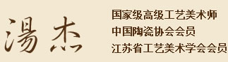 汤杰 中国陶瓷协会会员,江苏省工艺美术学会会员,宜兴市陶园阁紫砂研究所负责人,现为中国工艺美术家协会会员,高级工艺美术师,中国工艺美术大师顾绍培工作室创作设计人员、嫡系传人。