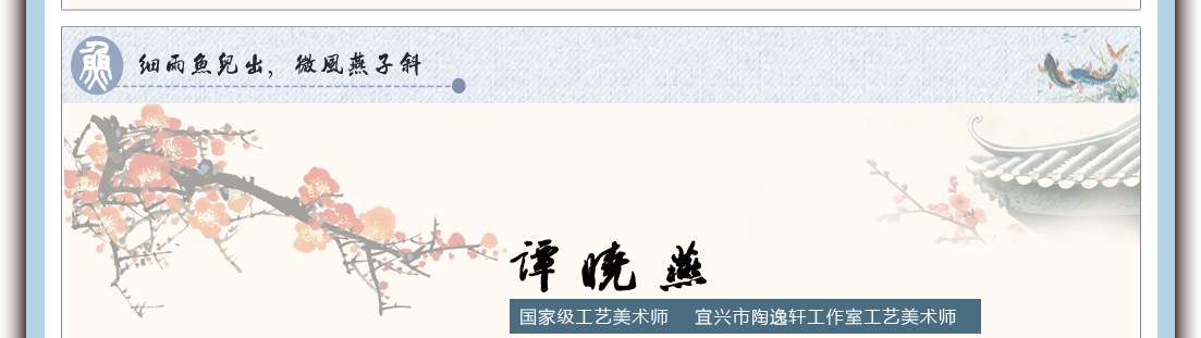 谭晓燕,国家级工艺美术师,1970年生于江苏省宜兴市丁蜀镇,宜兴市陶逸轩工作室工艺美术师。