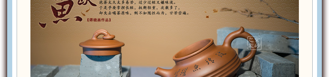 谭晓燕思维广袤,技艺娴熟,作品以构思精巧、稳重古朴、端庄大方见长。所制茗壶都由其父谭泉海大师设计监制,提刀亲携,也曾被著名画家范曾等大师看重赏识,亲笔刻绘,从而使壶艺与书画交相辉映,浑然天成,达到了“壶随字贵,字与壶传”的艺术佳境。作品多次获奖,并被国内外知名收藏家或机构收藏,其中“汉风壶”先后获2001年中国宜兴陶瓷艺术展评优秀奖、2002年中国华东工艺美术精品奖铜奖;“行云”、“流水”系列壶获2003年江苏省陶瓷协会评比新人新作奖;“古韵壶”获2005年全国礼品艺术品家居饰品博览会一等奖,并被中国工艺美术馆珍宝馆收藏。